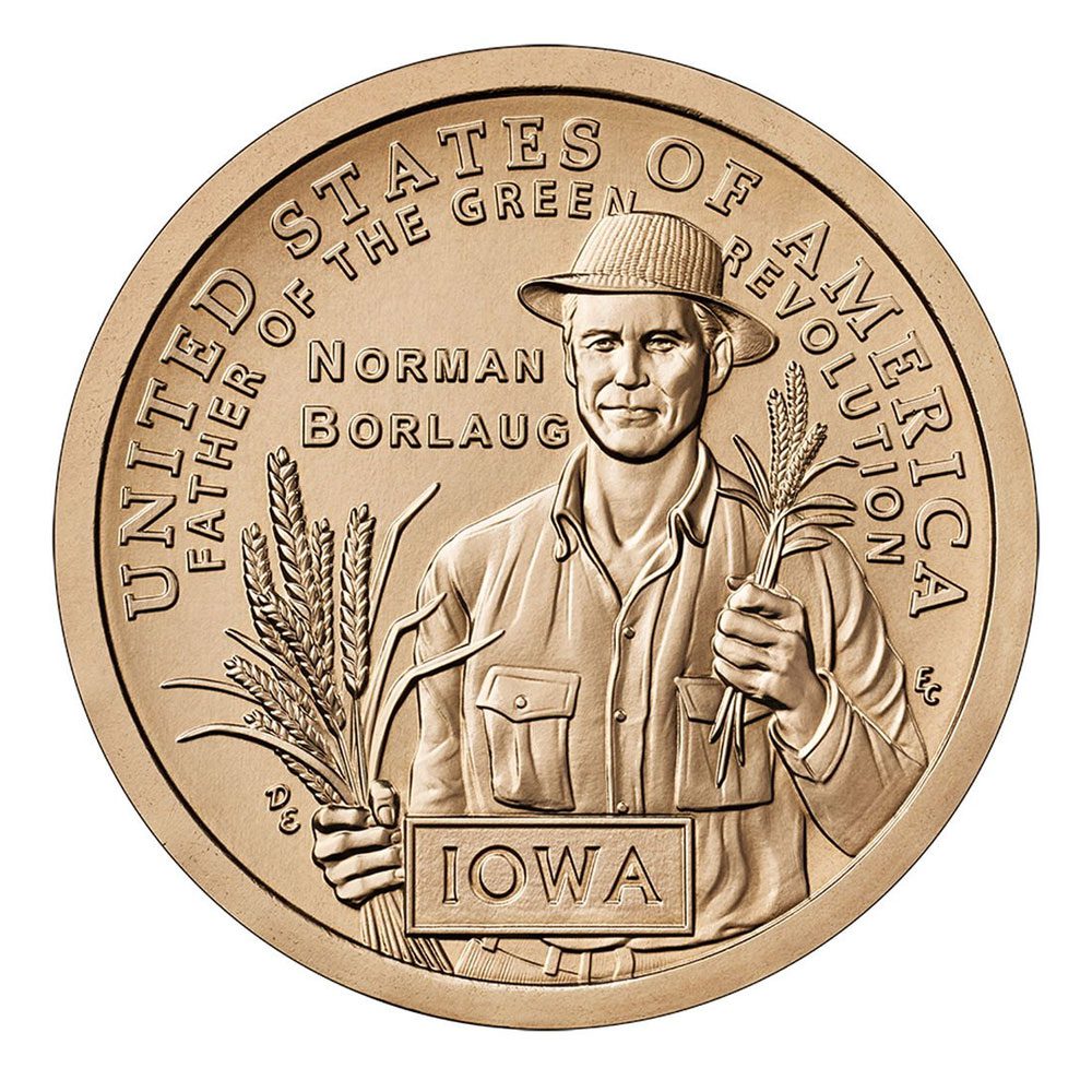 - “UNITED STATES OF AMERICA” & “IOWA” – Honoring both the nation and the state that shaped Borlaug’s early years and scientific inspiration.