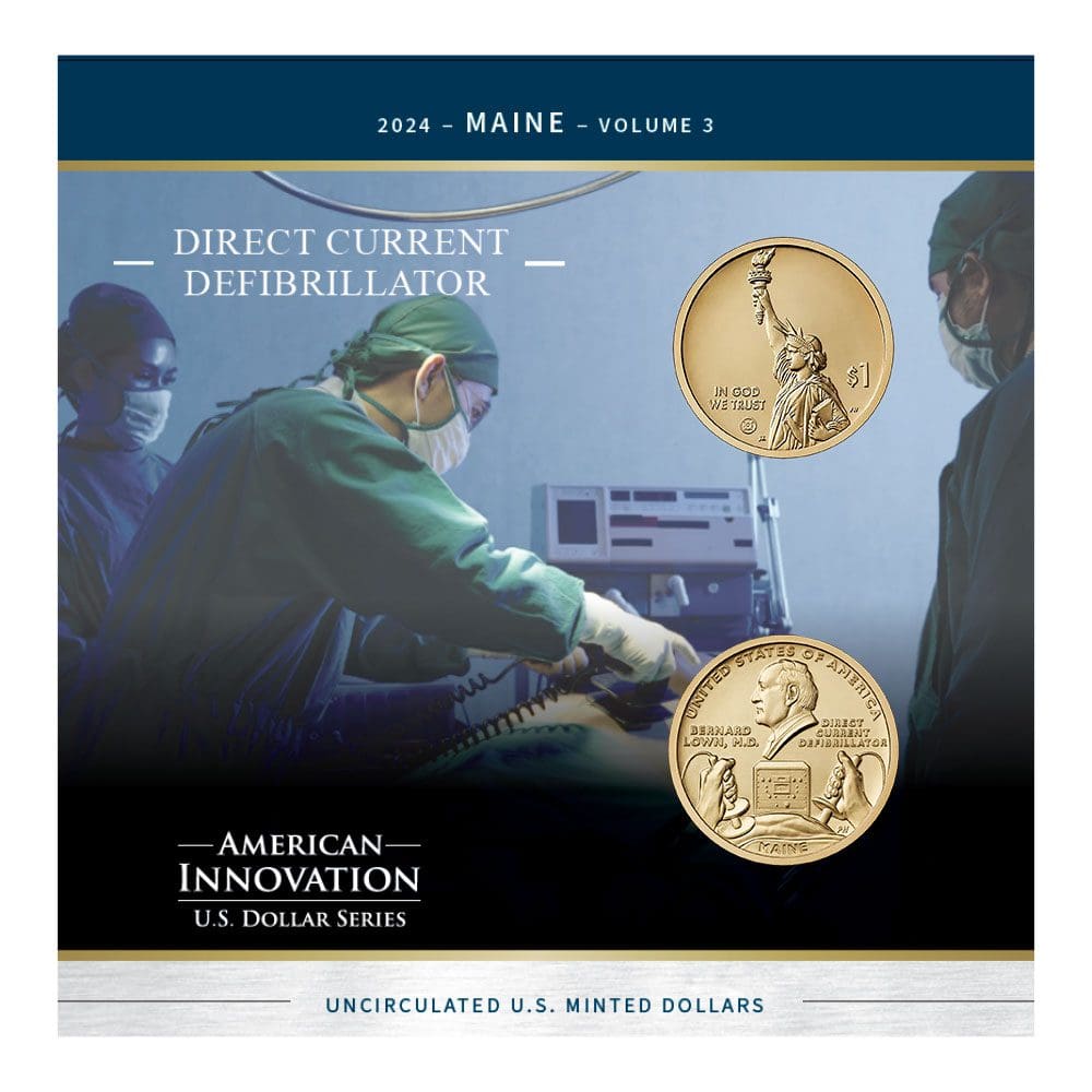2024 Maine American Innovation $1 Coin – Honoring Dr. Bernard Lown and the Direct Current Defibrillator