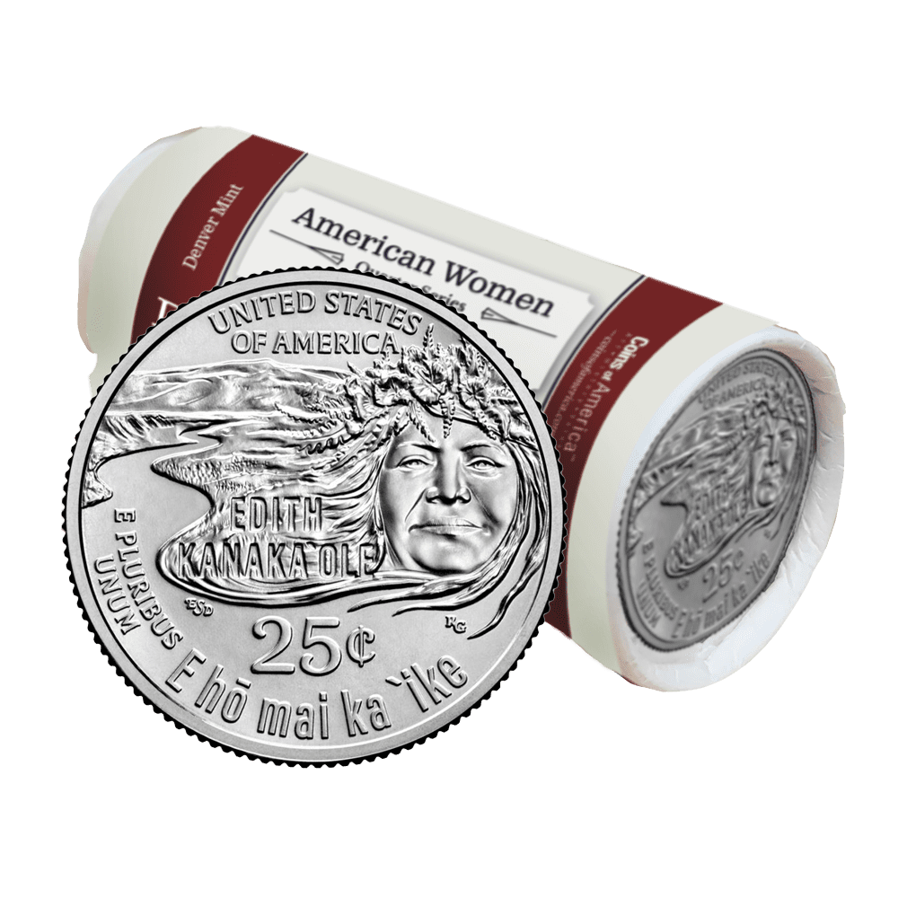 The reverse (tails) features a depiction of Edith Kanakaʻole, with her hair and lei poʻo (head lei) morphing into the elements of a Hawaiian landscape, symbolizing Kanakaʻole’s life’s work of preserving the natural land and traditional Hawaiian culture. The inscription “E hō mai ka ʻike” translates as “granting the wisdom,” and is a reference to the intertwined role hula and chants play in this preservation.
