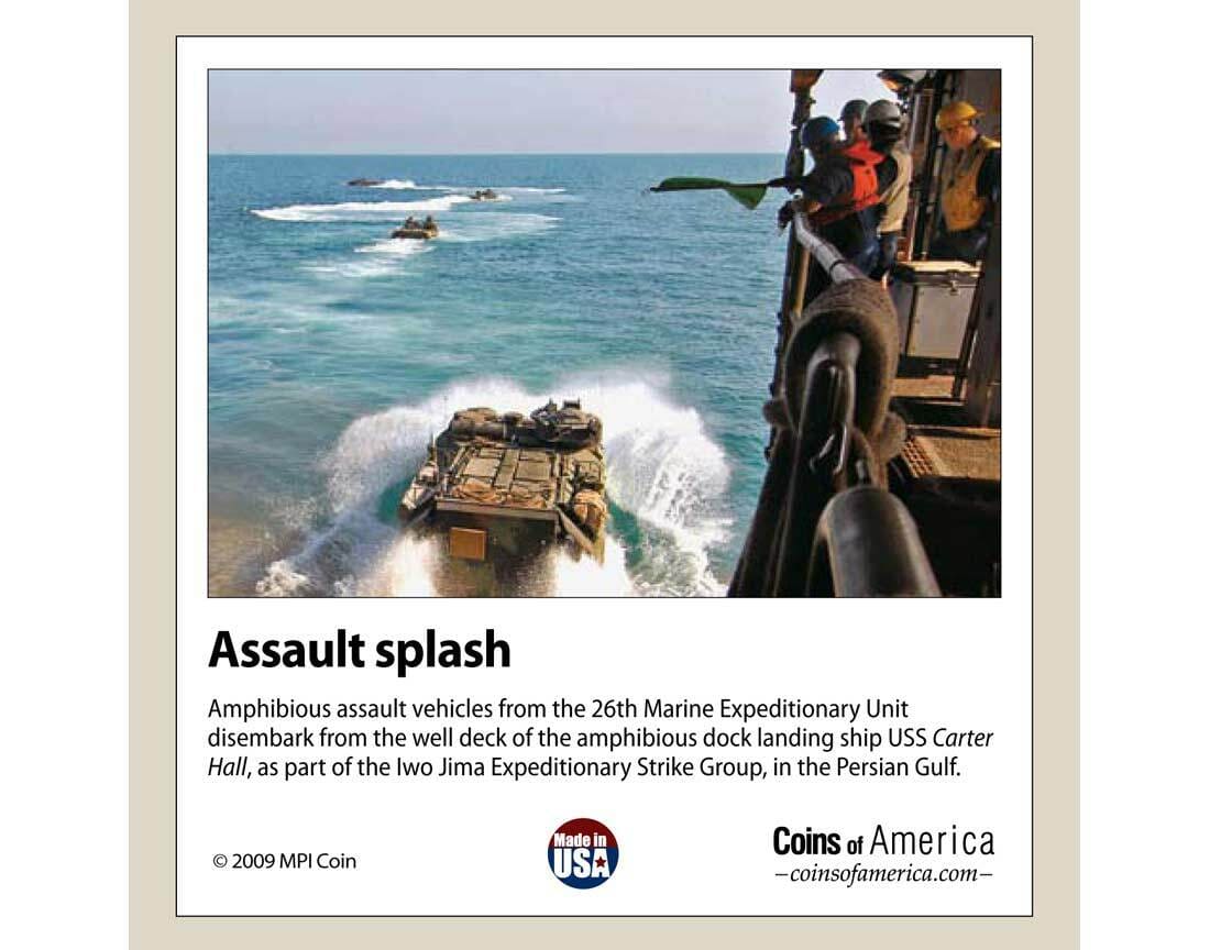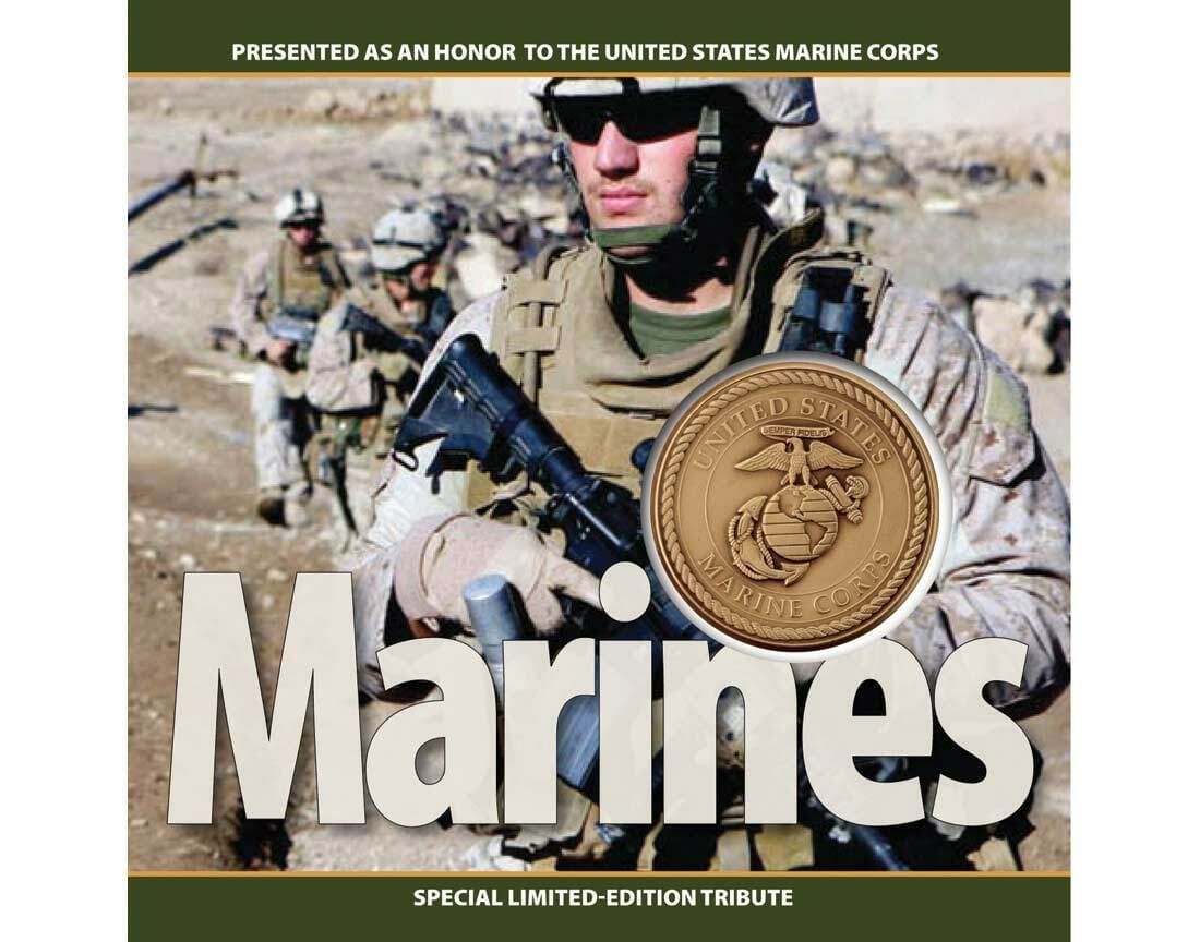 Military Tributes are unique products to honor America’s Bravest. Each coin represents the celebration of the men and women who protect our freedom and safety. This tribute coin collection, comprised with brilliant pictures, holds a 39 mm bronze challenge coin affixed to a sturdy tri-fold card describing the history and contributions that the Marines have made.