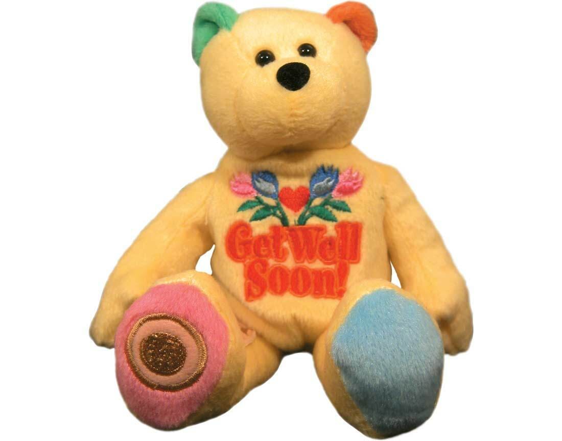 The perfect pick-me-up for a sick child or a bed-bound friend, this plush beanie bear brings a message of hope and affection. Bright pastel colors are bound to bring a smile.
