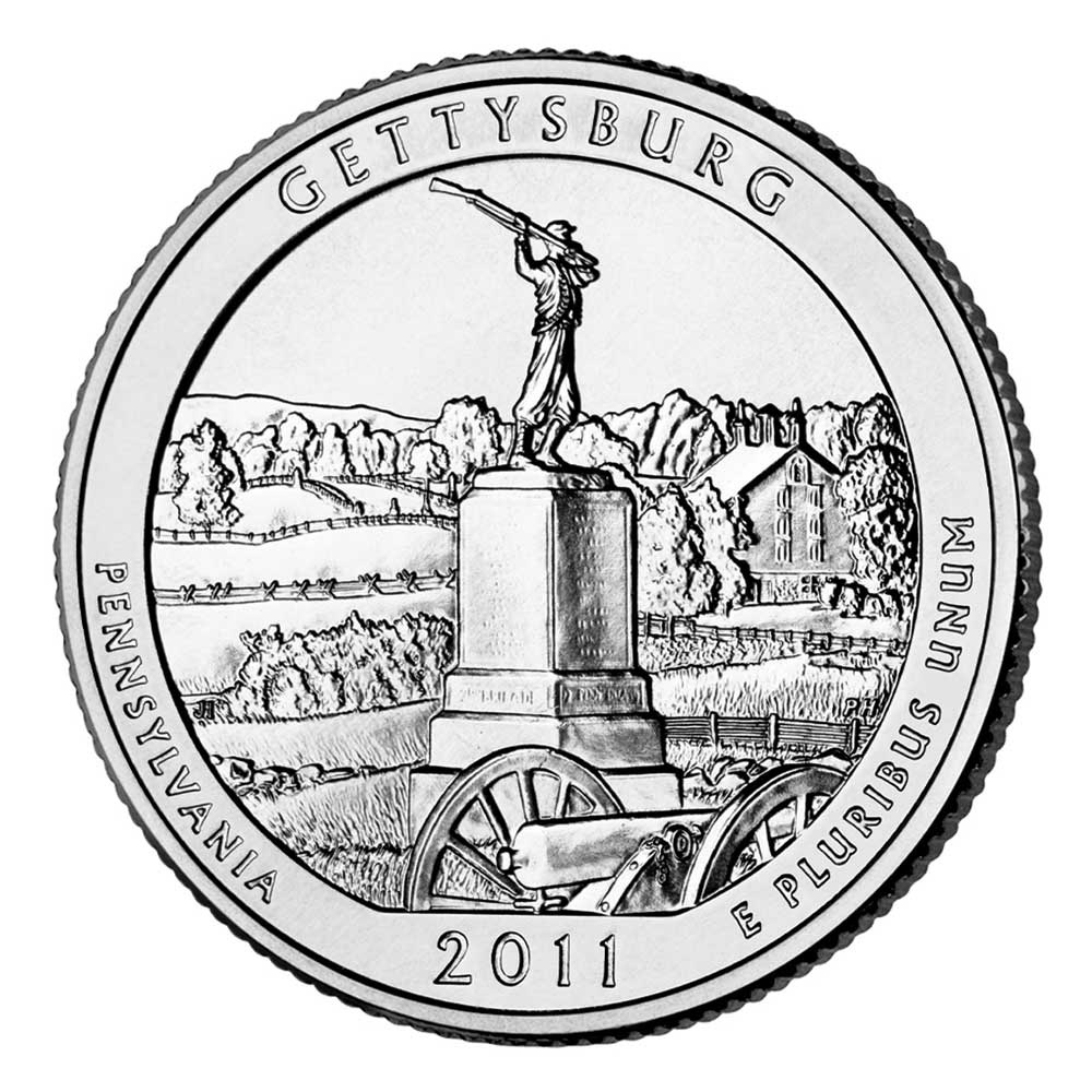 Many of the nation’s collectors and American history enthusiasts seek the added value of a pristine uncirculated quarter from each mint. As circulated quarters continue to be difficult to find, these collections will become a premium item. The Gettysburg National Military Park Quarter is the first of the 2011 National Parks Quarters to be released.
