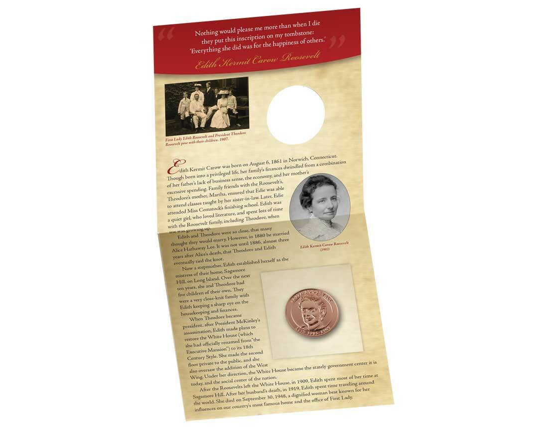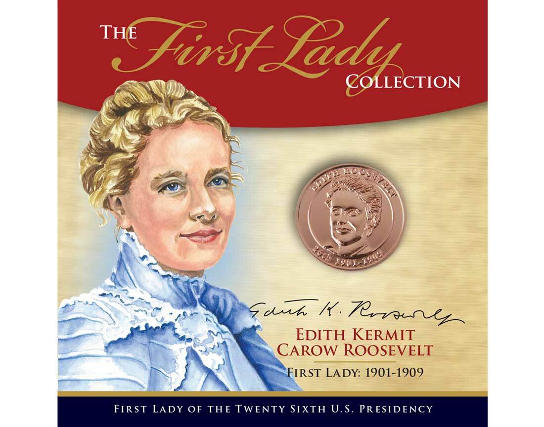 The Edith Roosevelt commemorative copper coin collection is a great way to honor the first lady of Theodore Roosevelt. This collection commemorates the first lady during her husband’s term in office as the 26th President of the United States. The First Lady Collections are full color and are a great way to collect the commemorative coins along with fascinating art and historical information.