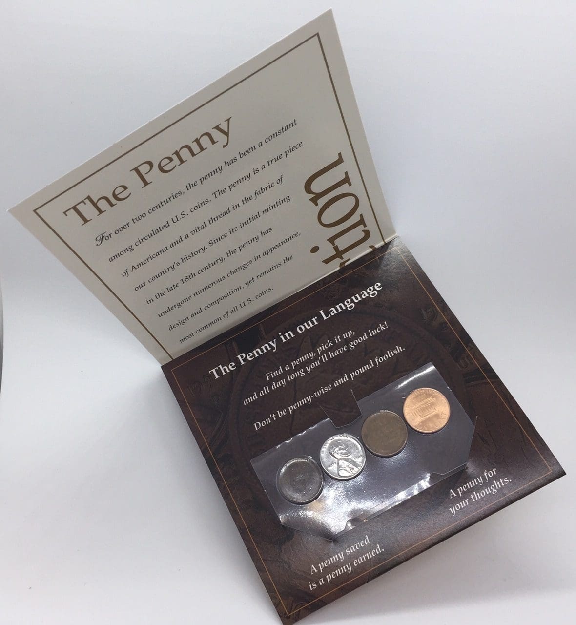 For over two centuries, the penny has been a constant among circulated U.S. coins. The penny is a true piece of Americana and a vital thread in the fabric of our country’s history. Since its initial minting in the late 18th century, the penny has undergone numerious changes in appearance, design and composition, yet remains the most common of all U.S. Coins. Buy your cent collection today. After all, a penny saved is in fact, a penny earned.