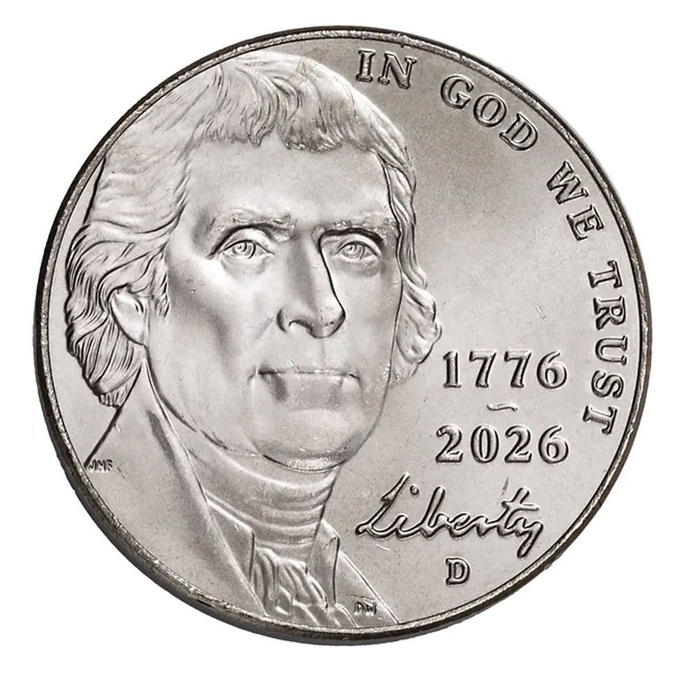 The 2026 Jefferson nickels will feature a special dual date of ” to celebrate the 250th anniversary of American independence (the Semiquincentennial).